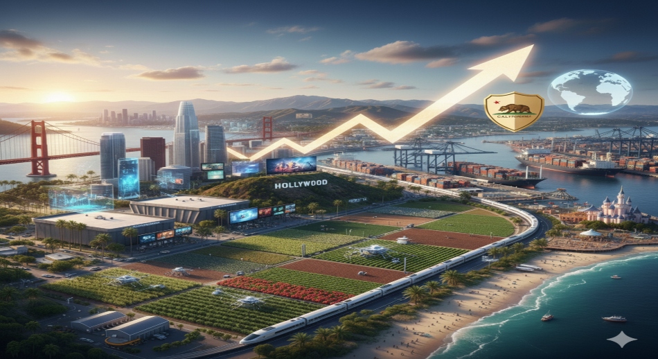 La agricultura y los recursos naturales del estado también juegan un rol significativo. California produce más de un tercio de los vegetales y frutas de Estados Unidos, y es líder mundial en cultivos como almendras, uvas, fresas y cítricos. La combinación de tecnología agrícola avanzada y eficiencia logística le permite mantener costos competitivos y abastecer mercados nacionales e internacionales, fortaleciendo así su posición económica.