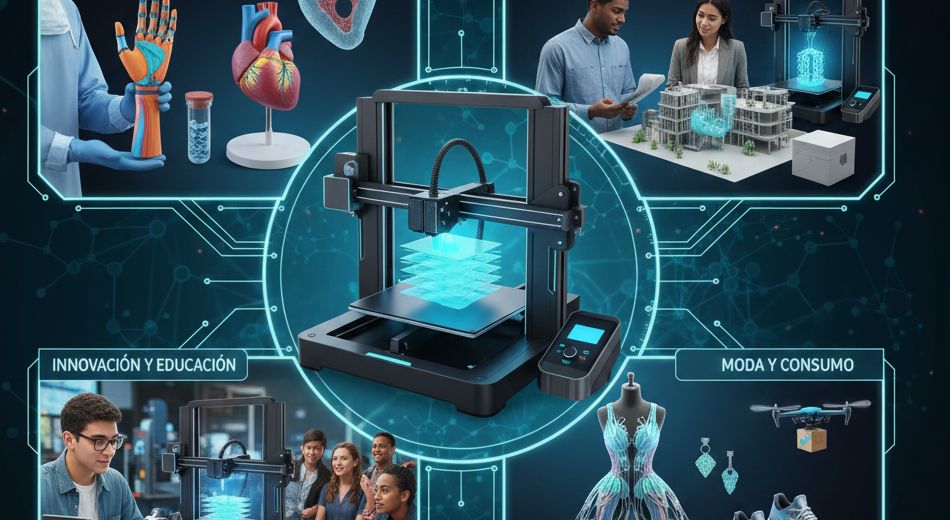 Incluso la educación se ha beneficiado: estudiantes de ingeniería, diseño y arte pueden experimentar directamente con la creación de objetos, desarrollando habilidades prácticas y fomentando la creatividad. La impresión 3D también está presente en moda, joyería, calzado y bienes de consumo, demostrando su versatilidad y capacidad para transformar industrias enteras.